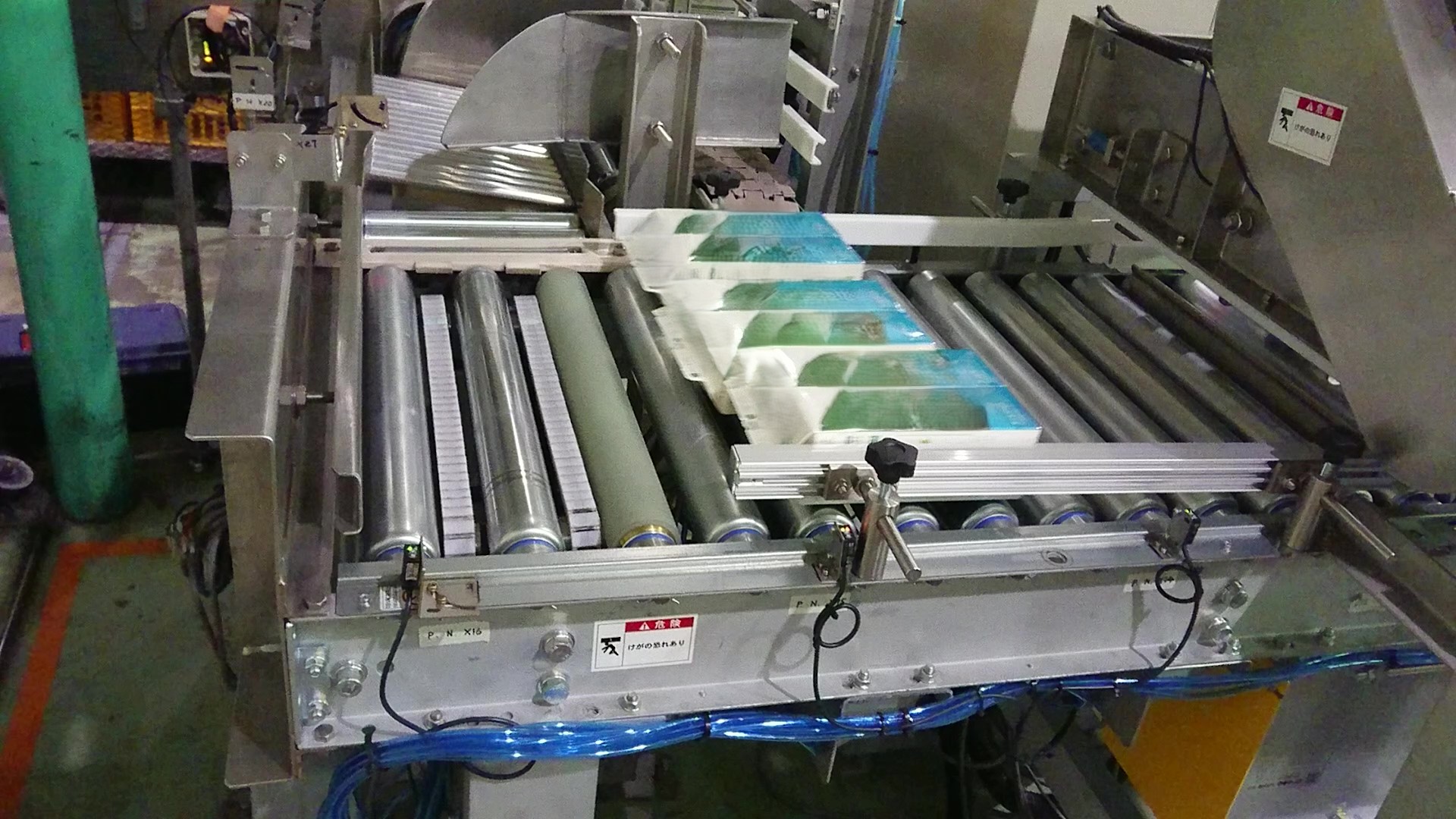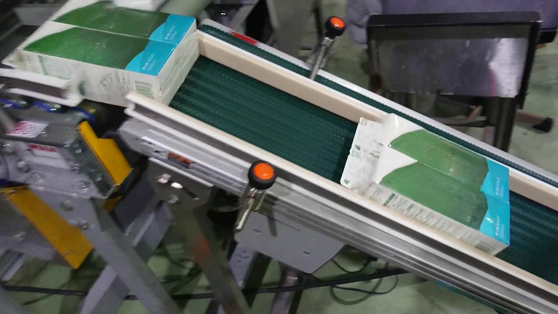 ・1パック2本の牛乳パックを3パック揃え、同時に起こしてコンベアラインに乗せる装置