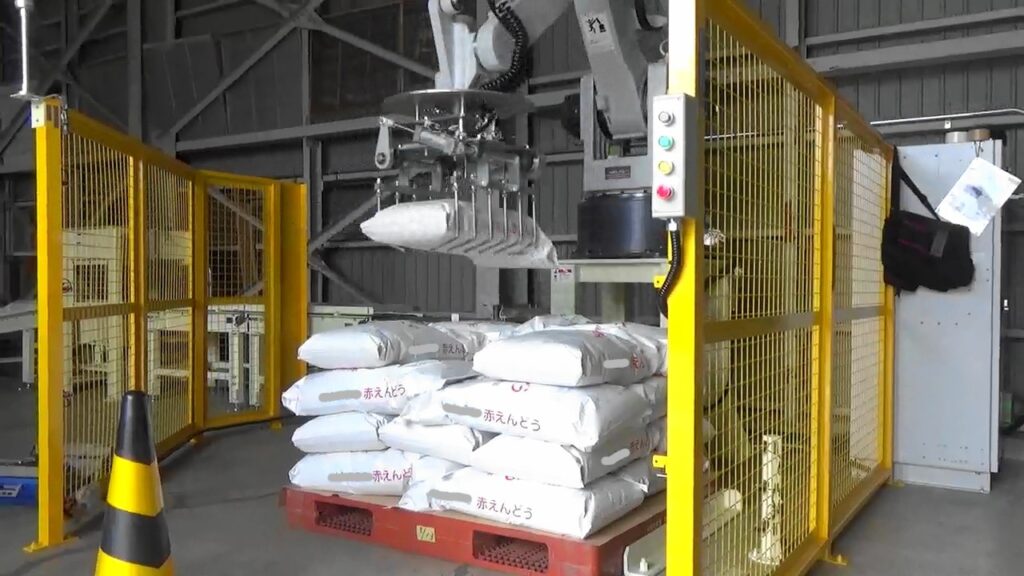 ・袋詰めされた豆を搬送。センサーで読み取ります